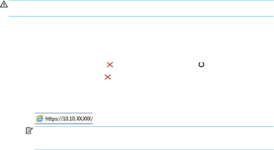 b. Open een internetbrowser en voer in de adresregel het IP-adres of de hostnaam in zoals die wordt