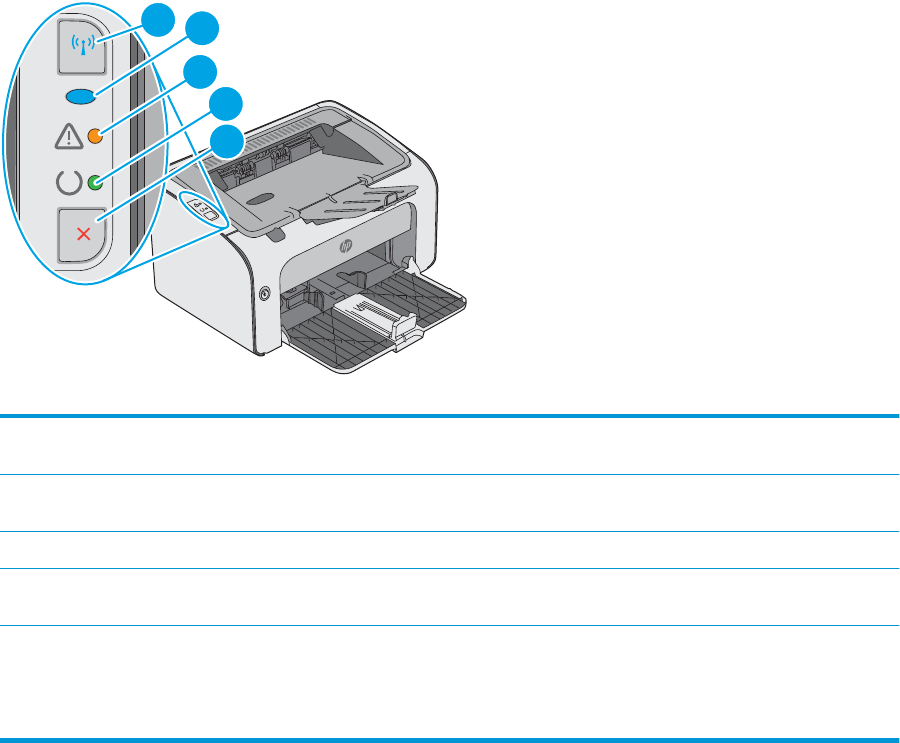 4 Üzemkész LED Ha a nyomtató készen áll a nyomtatásra, az üzemkész jelzőfény világít. Ha a nyomtató