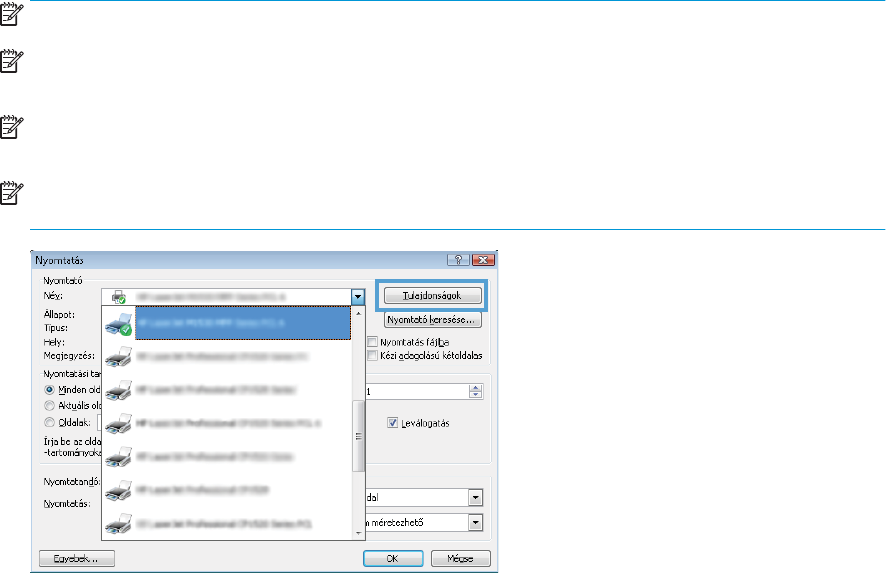 MEGJEGYZÉS: Az Ön nyomtató-illesztőprogramjának megjelenése eltérhet az itt bemutatott ábrától, de a