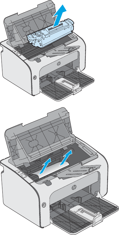 3. Iš dažų kasetės srities pašalinkite visą užstrigusį