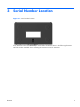 3 Serial Number Location Figure 3-1 Serial number location Every t200 Zero Client includes a unique serial number located as shown in the following illustration. Have this number available when contacting HP customer service for assistance.