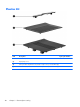 (14) Base enclosure (includes 2 battery release latches, and 4 rubber feet) 611496-001