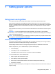 Conserving battery power ● Select low power-use settings through Power Options in Windows Control Panel. ● Turn off wireless and local area network (LAN) connections and exit modem applications when you are not using them. ● Disconnect external devices that are not plugged into an external power source, when you are not using them. ● Stop, disable, or remove any external media cards that you are not using. ● Use the fn+f7 and fn+f8 hotkeys to adjust screen brightness as needed.