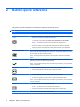 Button Function Fast-forward ● Press the button to fast-forward the selected media. NOTE: ● The button does not work with some media files. Press the fast-forward button and then press the play button to activate play. Previous Press the button to move back one track or chapter. Up Navigation. Press the button to move up between menus, windows, or activities. Next Press the button to move forward one track or chapter. Left Navigation.