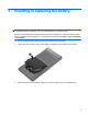 3 Inserting or replacing the battery WARNING! To reduce potential safety issues, use only the battery provided with the remote control, a replacement battery provided by HP, or a compatible battery purchased from HP. Dispose of used batteries according to the instructions in the Regulatory, Safety and Environmental Notices located in Help and Support. To access Help and Support, select Start > Help and Support > User Guides.