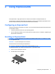 2 Using ExpressCards An ExpressCard is a high-performance PC Card that is inserted into the ExpressCard slot. Like standard PC Cards, ExpressCards are designed to conform to the standard specifications of the Personal Computer Memory Card International Association (PCMCIA). Configuring an ExpressCard Install only the software required for your device. If you are instructed by the ExpressCard manufacturer to install device drivers: ● Install only the device drivers for your operating system.