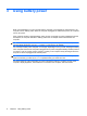 If a low battery level is not resolved, the computer enters a critical battery level, and the battery light