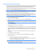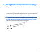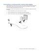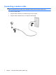 Connecting a modem cable WARNING! To reduce the risk of electric shock, fire, or damage to the equipment, do not plug a modem cable (included with select models only) or telephone cable into the RJ-45 (network) jack. To connect a modem cable: 2 1. Plug the modem cable into the modem jack (1) on the computer. 2. Plug the modem cable into the RJ-11 telephone wall jack (2).