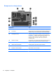 (4) HP Fingerprint Sensor (čitač otiska prsta) Omogućava prijavu u sustav Windows pomoću otiska prsta