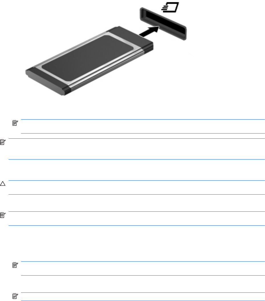 OPOMBA: Ko prvič vstavite kartico ExpressCard, se v področju za obvestila prikaže sporočilo,