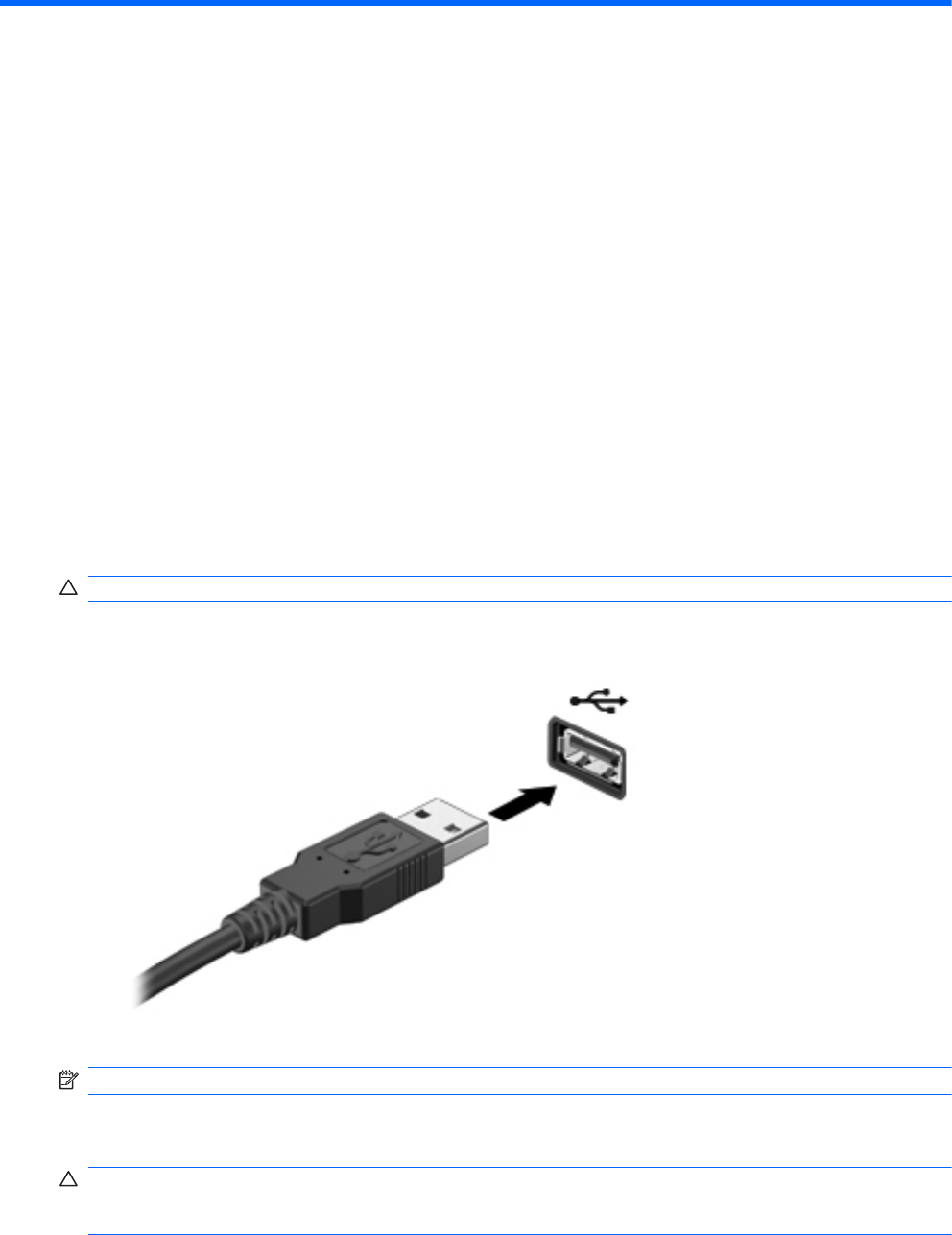 注: 第一次连接 USB 设备时,通知区域将显示一条消息,提示您笔记本计算机已识别该设备。
