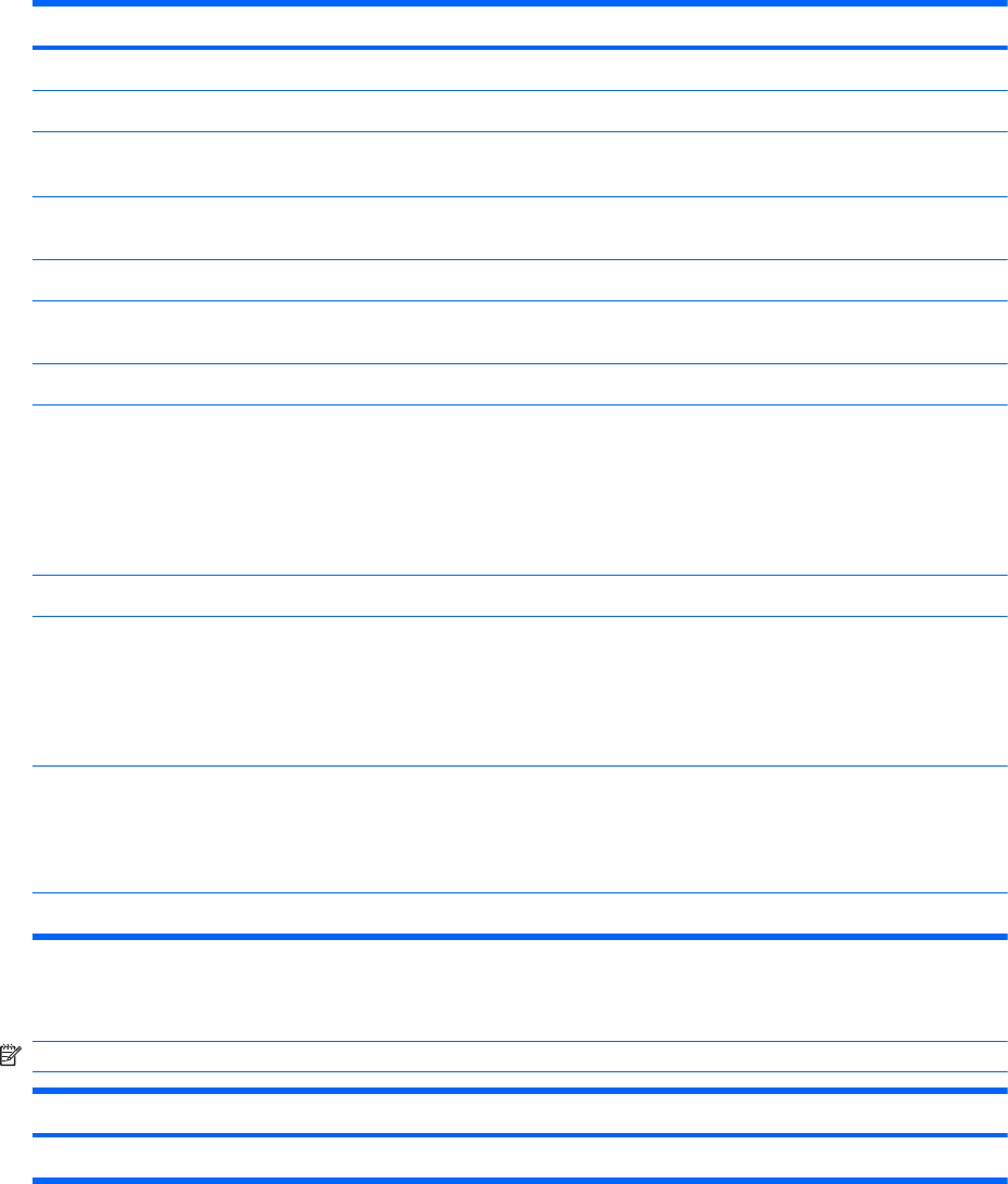 注: 您的笔记本计算机可能不支持表中列出的某些系统配置选项。