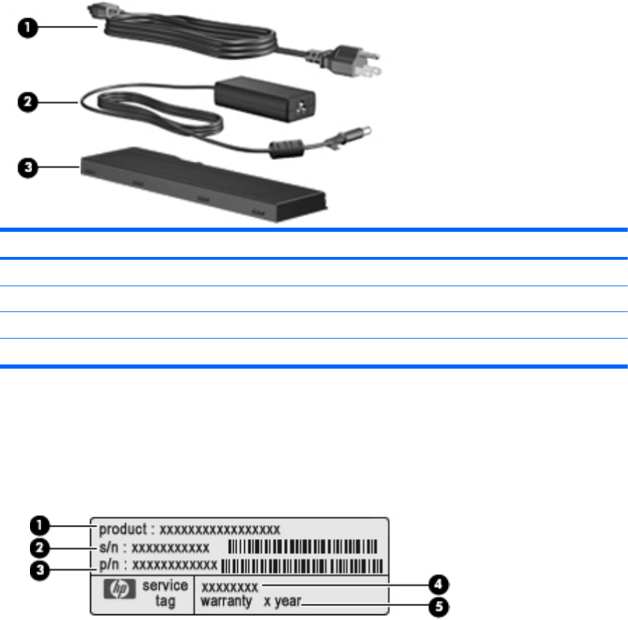 型号说明 (4)。使用此编号可以查找此款笔记本计算机适用的文档、驱动程序和支持。