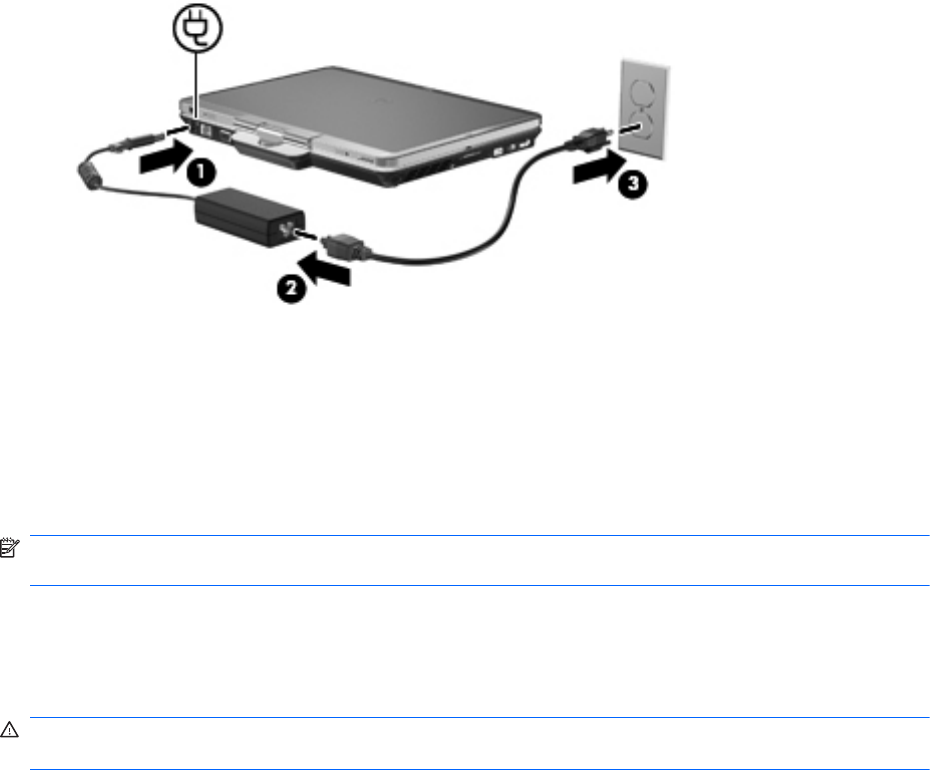 时,如果断开交流电源适配器与笔记本计算机的连接,笔记本计算机就会切换到依靠电池电源供电。