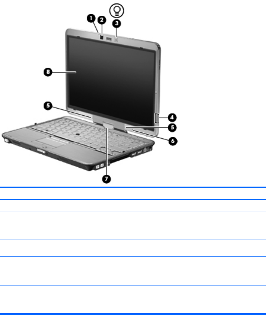 (5) 内蔵マイク(×2) サウンドを録音したり、ビデオ会議および VoIP(Voice Over