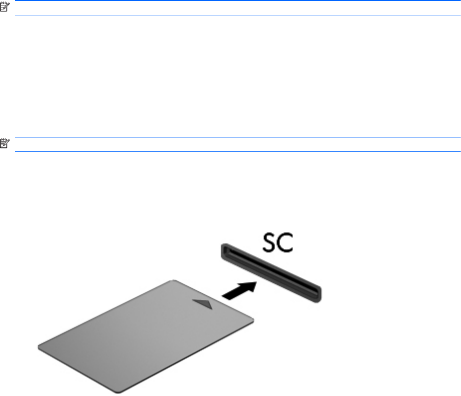 1. Segurando o smart card com a etiqueta para cima, insira-o no leitor até ele encaixar.