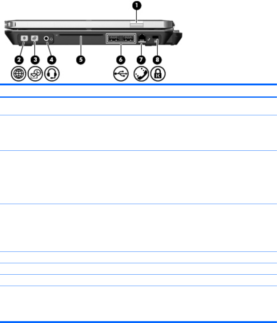 (8) Slot para cabo de segurança Conecta um cabo de segurança opcional ao computador.
