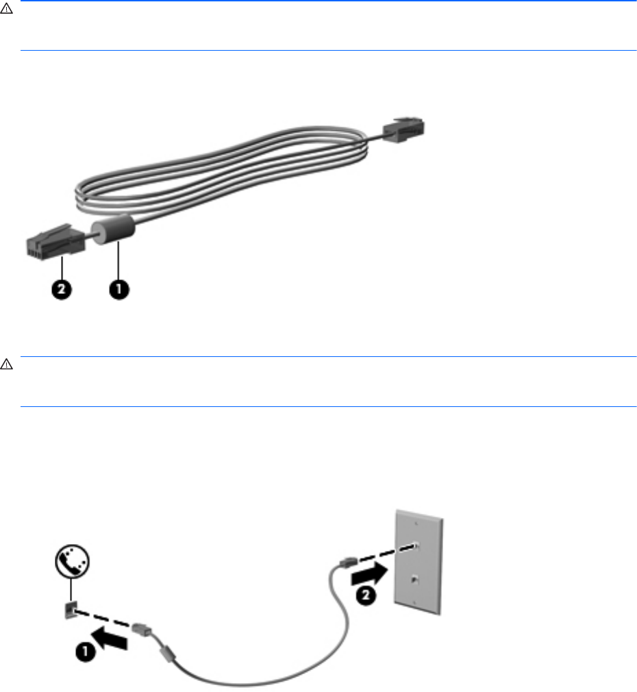 1. Conecte o cabo de modem à tomada do modem (1) no computador.