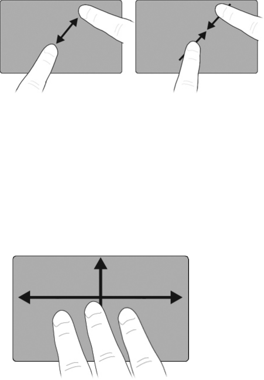 1. Coloque três dedos, ligeiramente separados, no TouchPad.