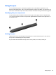 1.27 cm (0.5 inch) from the screen. The pen button (2) emulates the functions of the right button on