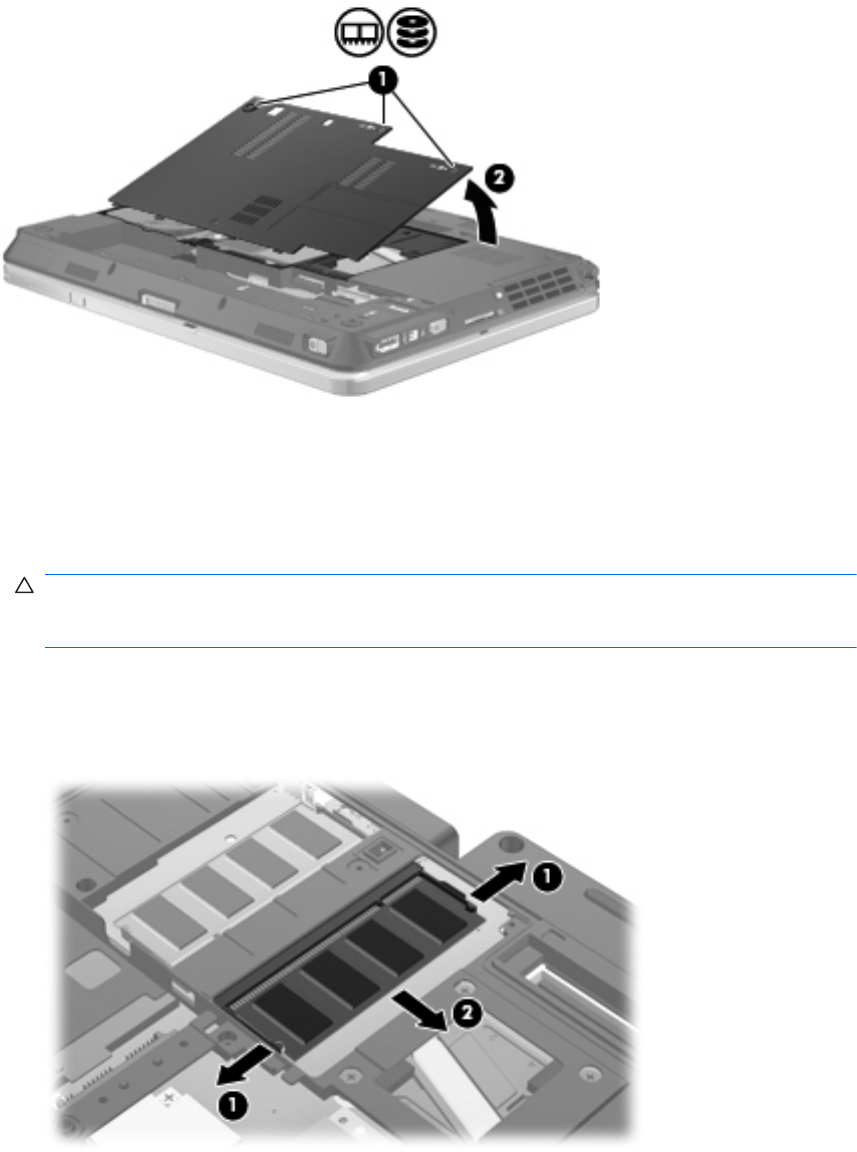 b. Fassen Sie das Speichermodul am Rand (2), und ziehen Sie es vorsichtig aus dem