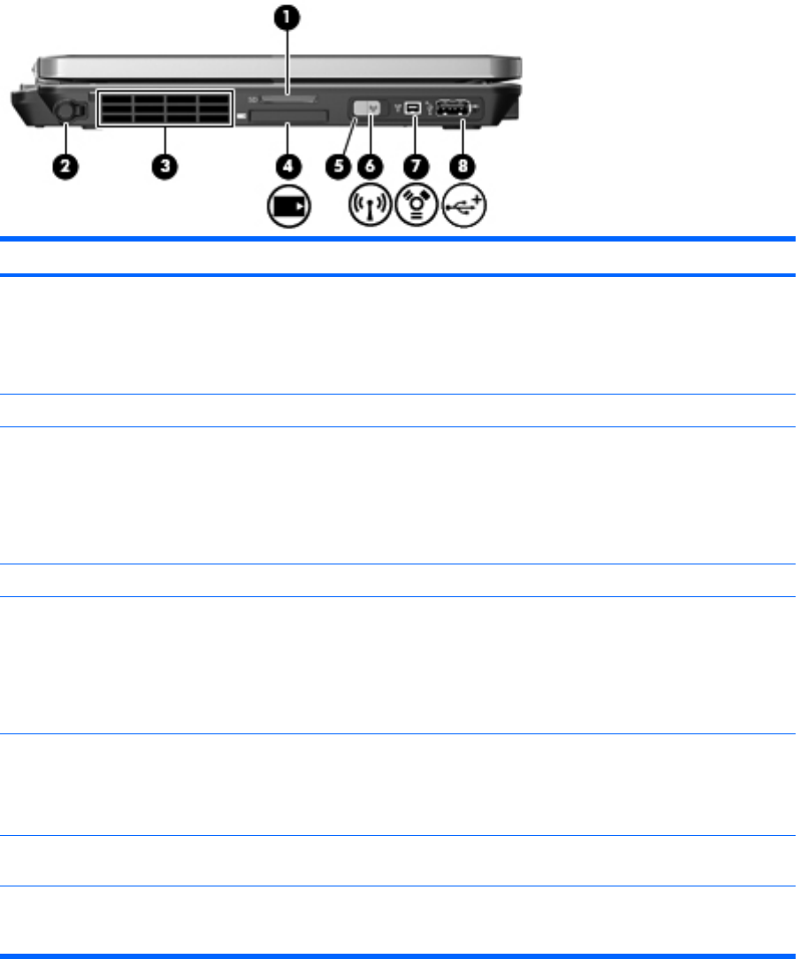 (4) ExpressCard-Steckplatz (bestimmte Modelle) Unterstützt optionale ExpressCards.
