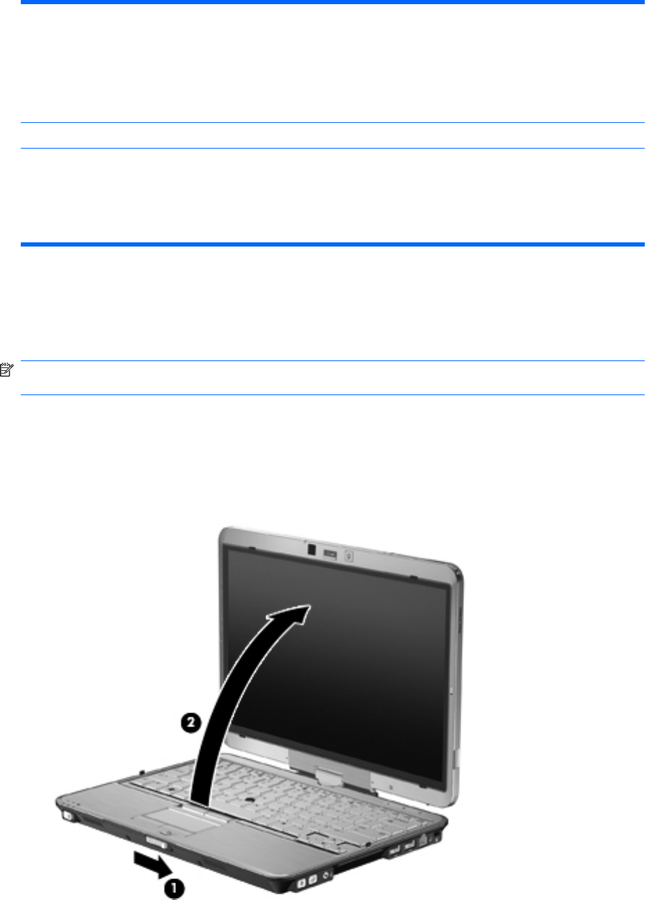1. Schieben Sie den Display-Entriegelungsschieber, um die Displayverriegelung zu lösen (1), und