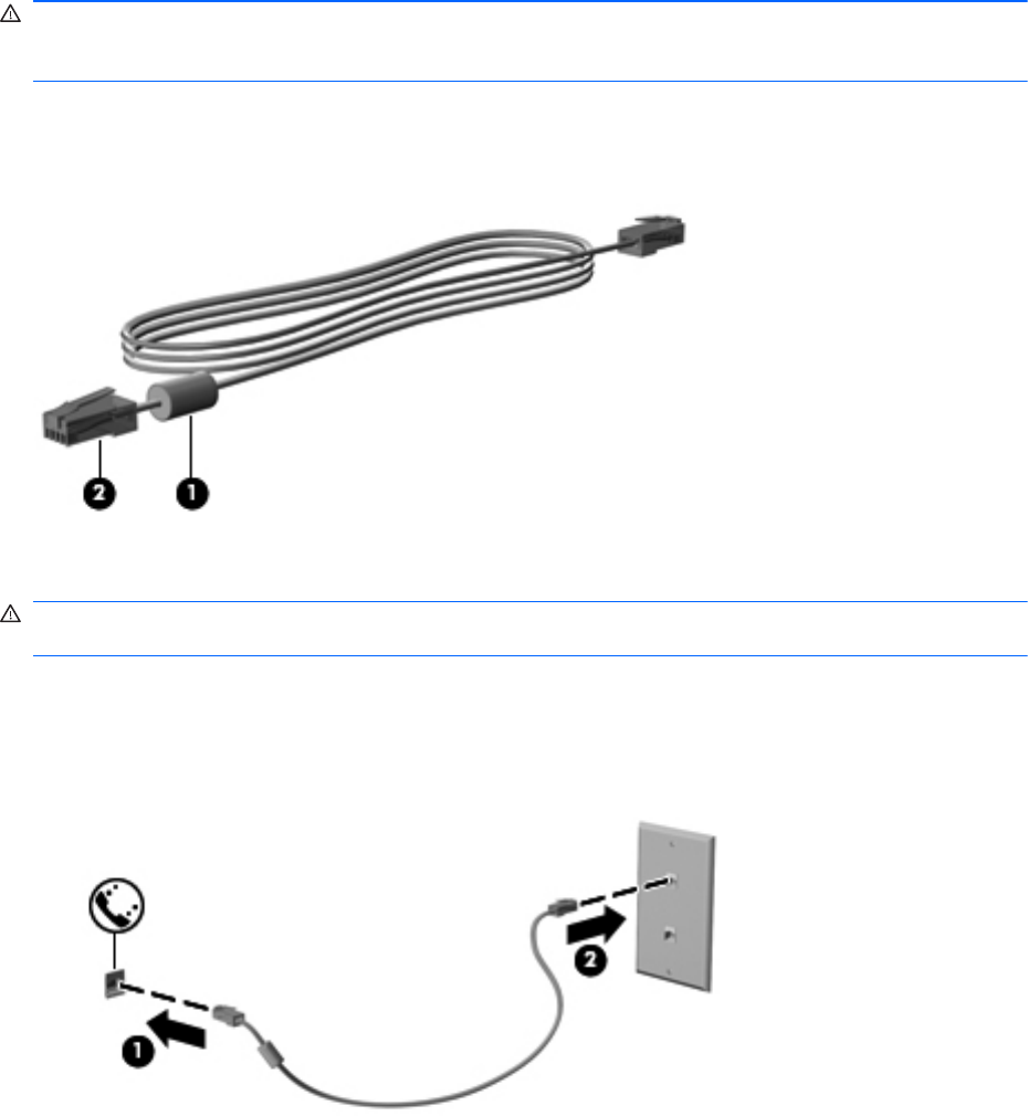2. Stecken Sie das Modemkabel in die RJ-11-Telefonbuchse (2).