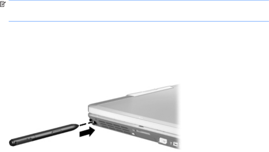 Um den Stift aus dem Stifthalter am Computer zu entfernen, drücken Sie den Stift nach innen, um ihn