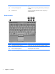(2) Gumb za zunanjo anteno WWAN Odpre zunanjo anteno za prostrano brezžično omrežje (WWAN).