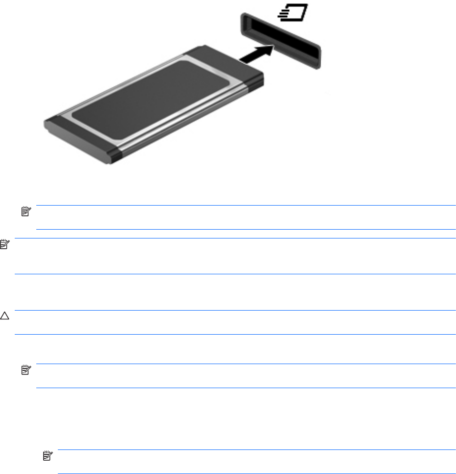 2. Włóż kartę do gniazda ExpressCard, a następnie dociśnij ją, aż zostanie prawidłowo osadzona.
