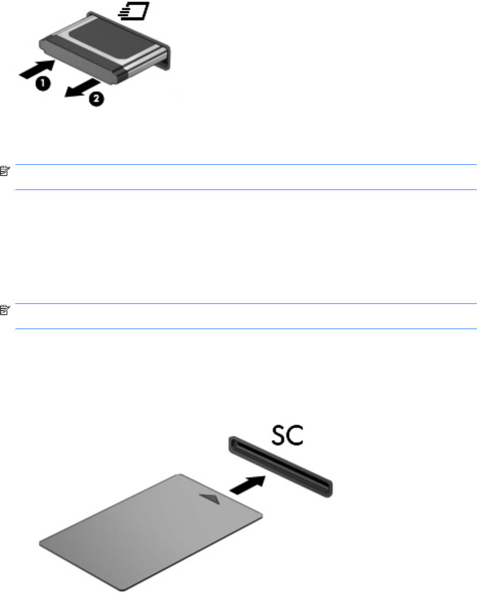 1. Trzymając kartę etykietą zwróconą do góry, wsuwaj kartę do czytnika kart inteligentnych, aż