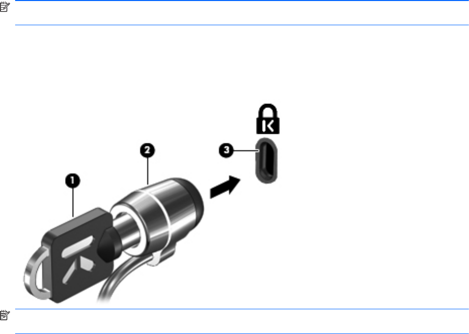 3. Włóż blokadę linki do gniazda w komputerze (3), a następnie zamknij ją za pomocą klucza.