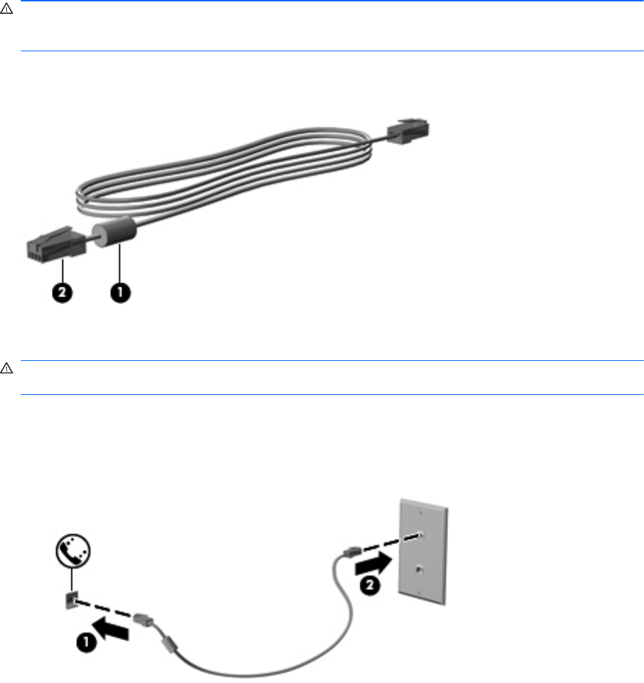 1. Podłącz kabel modemowy do gniazda modemowego w komputerze (1).