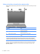 1. Posunutím uvolňovací západky displeje uvolněte displej (1) a poté otevřete displej počítače (2).