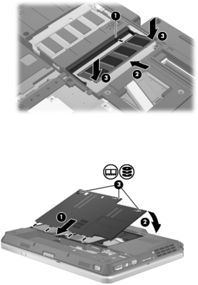 c. Empurre cuidadosamente o módulo de memória (3), aplicando pressão nas extremidades