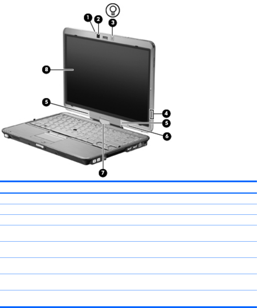 (1) Luz da câmara Web Acesa: A câmara Web está em uso.