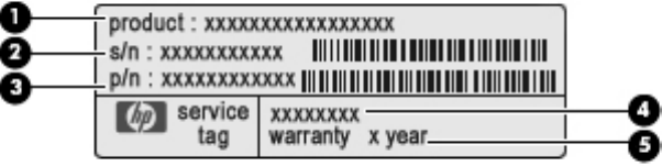 Etiqueta de serviço - Fornece informações importantes, incluindo a seguinte:
