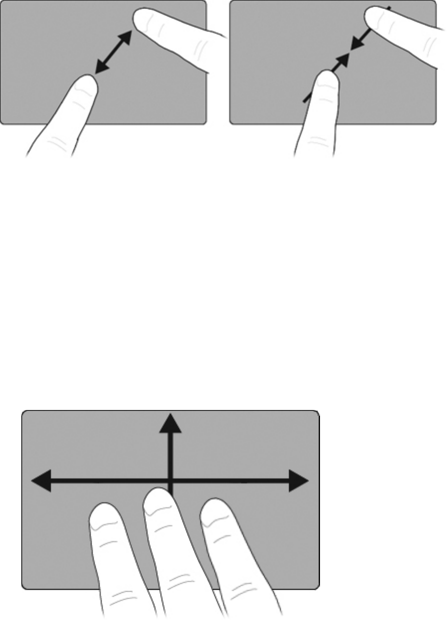 O gesto de movimento de três dedos permite navegar na Internet ou deslocar fotos numa janela do
