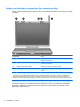 1. Posunutím uvolňovací západky displeje uvolněte displej (1) a poté otevřete displej počítače (2).