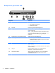 (8) Strømførende USB-port Sørger for strøm til en USB-enhet, som en ekstern MultiBay-