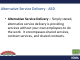 Alternative Service Delivery - ASD • Alternative Service Delivery – Simply stated, alternative service delivery is providing services without your own employees to do the work. It encompasses shared services, contract services, and shared contracts.