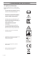 INHALT 1. Einführung und Sicherheit .................................................. 5 1.1 Einführung ................................................................................. 5 1.2 Symbole an Automower® ..................................................... 6 1.3 Symbole in der Bedienungsanleitung .............................. 7 1.4 Sicherheitsvorschriften ......................................................... 8 2. Vorstellung ..................................................................