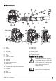 Product overview 15 3 14 19 20 18 16 19 25 24 23 21 22 8 26 4 9 2 7 12 BFS Mark III 1 5 16 11 17 10 12 1. Frame 2. Harness 3. Engine cover 4. Fan housing 5. Air intake screen 6. Fan 7. Air filter 8. Starter rope handle 9. Fuel tank 10. Waist belt 11. Spark plug 12. Vibration damping system 13. Choke control 14. Handle 15. Stop switch with throttle position adjustment 16. Throttle trigger/Throttle lever 17. Stop switch 18. Pipe angle 19. Clamp 20. Flexible hose 1667 - 002 - 19.04.