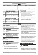 • • • • • • • • • • • • • • • • 6 It is extremely important that you read and understand the contents of this operator’s manual. Long-term exposure to noise can result in permanent hearing impairment. Always use approved hearing protection. Do an overall inspection of the machine before use. Refer to Maintenance schedule on page 15. Never use the machine if you are tired, if you have drunk alcohol, or if you are taking medication that could affect your vision, your judgement or your coordination.
