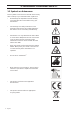 1. INTRODUCTION AND SAFETY 1.3 Symbols in the Operator’s Manual These symbols can be found in the Operator’s Manual. Study them carefully so you understand their significance. • Inspection and/or maintenance must be carried out with the main switch set to OFF. • Always wear protective gloves when working with the mower’s underframe. • Never use a high-pressure washer or even running water to clean Automower®.