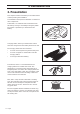 8. MAINTENANCE 5. Unscrew the blade. Use a straight slot or cross-tip screwdriver. 6. Pry apart the skid plate and blade disc a little and remove the blade and screw. 7. Screw tight the new blade. 8.7 Transport and moving Secure the machine during transport. It is important that the Automower® does not move around while being transported e.g. between different grass areas. There is an Automower® bag (522 91 67-01) designed especially to facilitate transport.