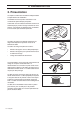 3. INSTALLATION 3.1 Préparations 1. Si l'herbe dans la zone de travail prévue dépasse les 10 cm de hauteur, tondez-la avec une tondeuse ordinaire. Ramassez ensuite l’herbe coupée. 2. Lisez attentivement toutes les étapes de l’installation. 3. Vérifiez que vous disposez de toutes les pièces nécessaires à l’installation : Les chiffres entre parenthèses renvoient au dessin des pièces 2.1 Les pièces de Automower™, page 11.