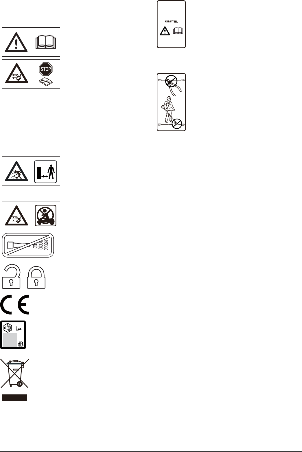 Deze symbolen staan op de robotmaaier. Bestudeer ze