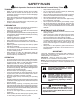 SAFETY RULES Safe Operation Practices for Walk-Behind Powered Rotary Tillers TRAINING • • • • • Read the Owner’s Manual carefully. Be thoroughly familiar with the controls and the proper use of the equipment. Know how to stop the unit and disengage the controls quickly. Never allow children to operate the equipment. Never allow adults to operate the equipment without proper instruction. Keep the area of operation clear of all persons, particularly small children, and pets.